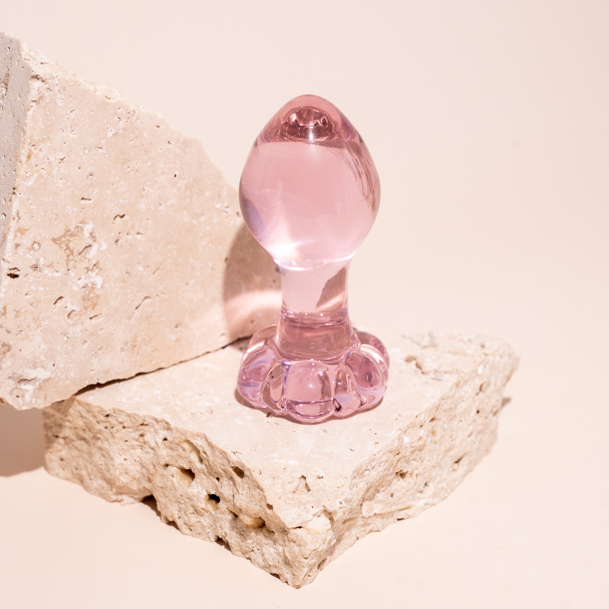 The Bloom is our pretty pink glass butt plug perfect for beginners to anal play!